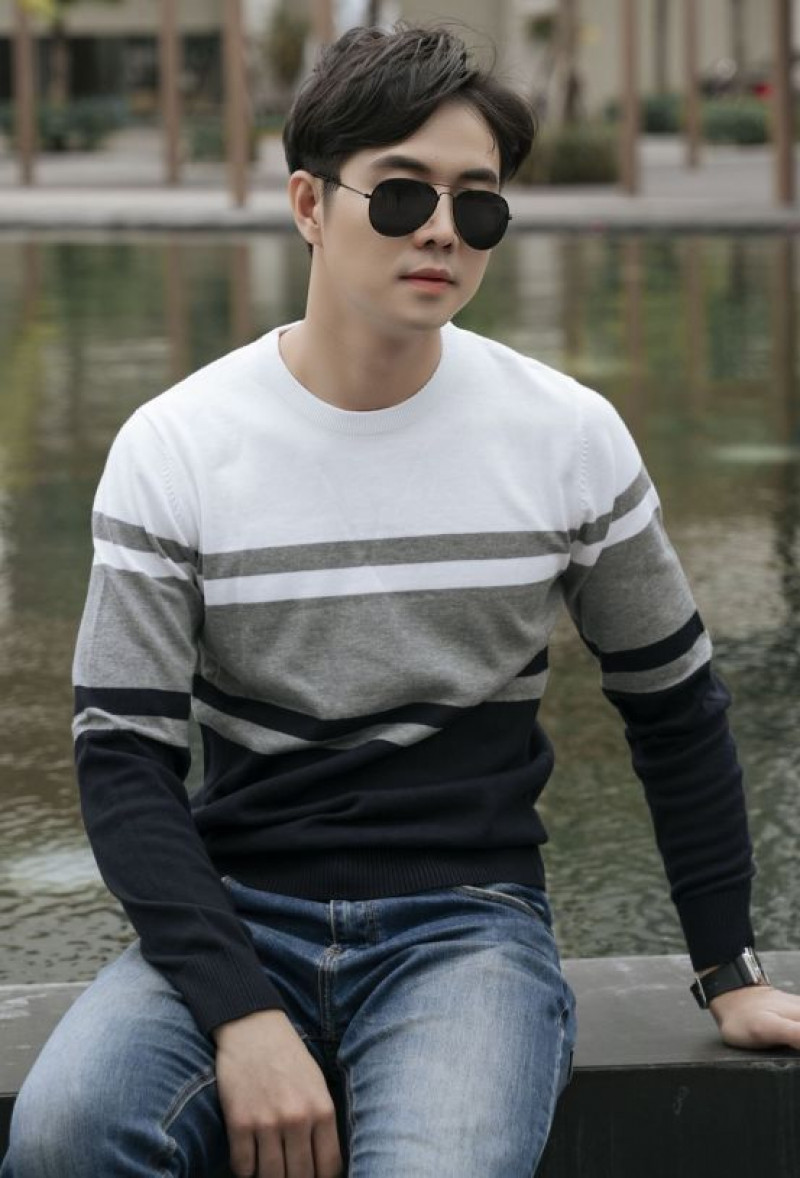 Áo len cổ tròn dệt kẻ ngang phối màu trẻ trung mang lại sự năng động cho người sử dụng.